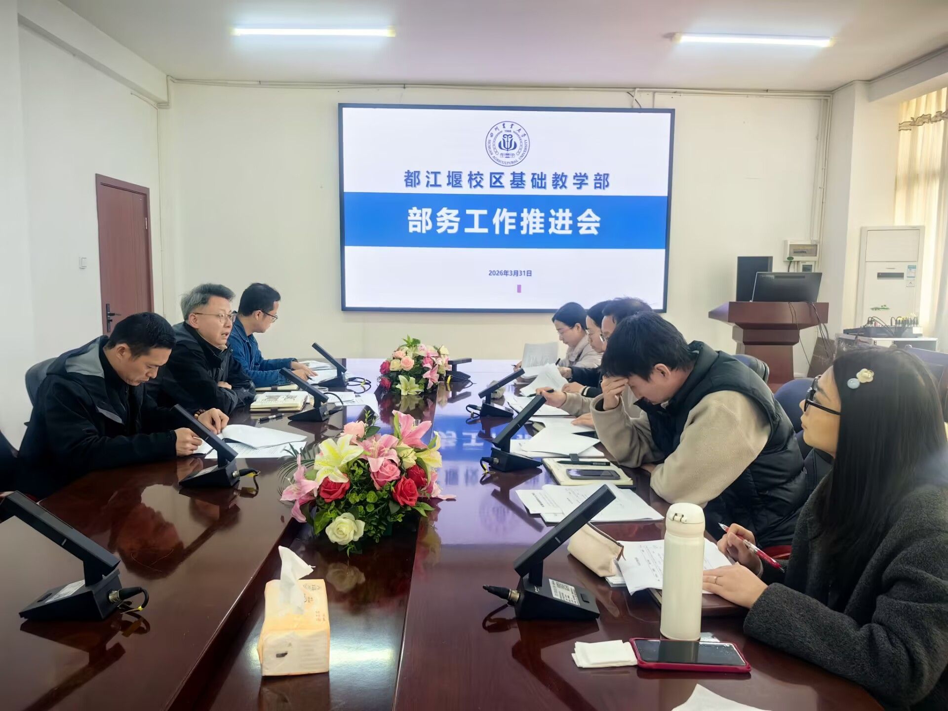 3月31日,基础教学部在4202召开部务工作会议,基础教学部主任刘诚、副主任赵文以及系部负责人参会。